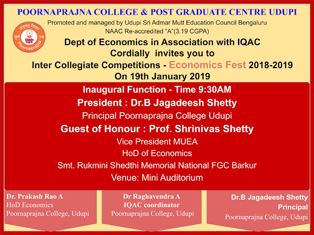 The Department of Economics of Poornaprajna College Udupi was established in 1960 along with establishment of College. The Department feels proud that the discipline it represents forms an integral part of human life and also that it caters to the most vital aspect of human endeavor. The dept. strives to unravel to the young minds the mystery that economics is and also the potentials it has for a constructive human life.